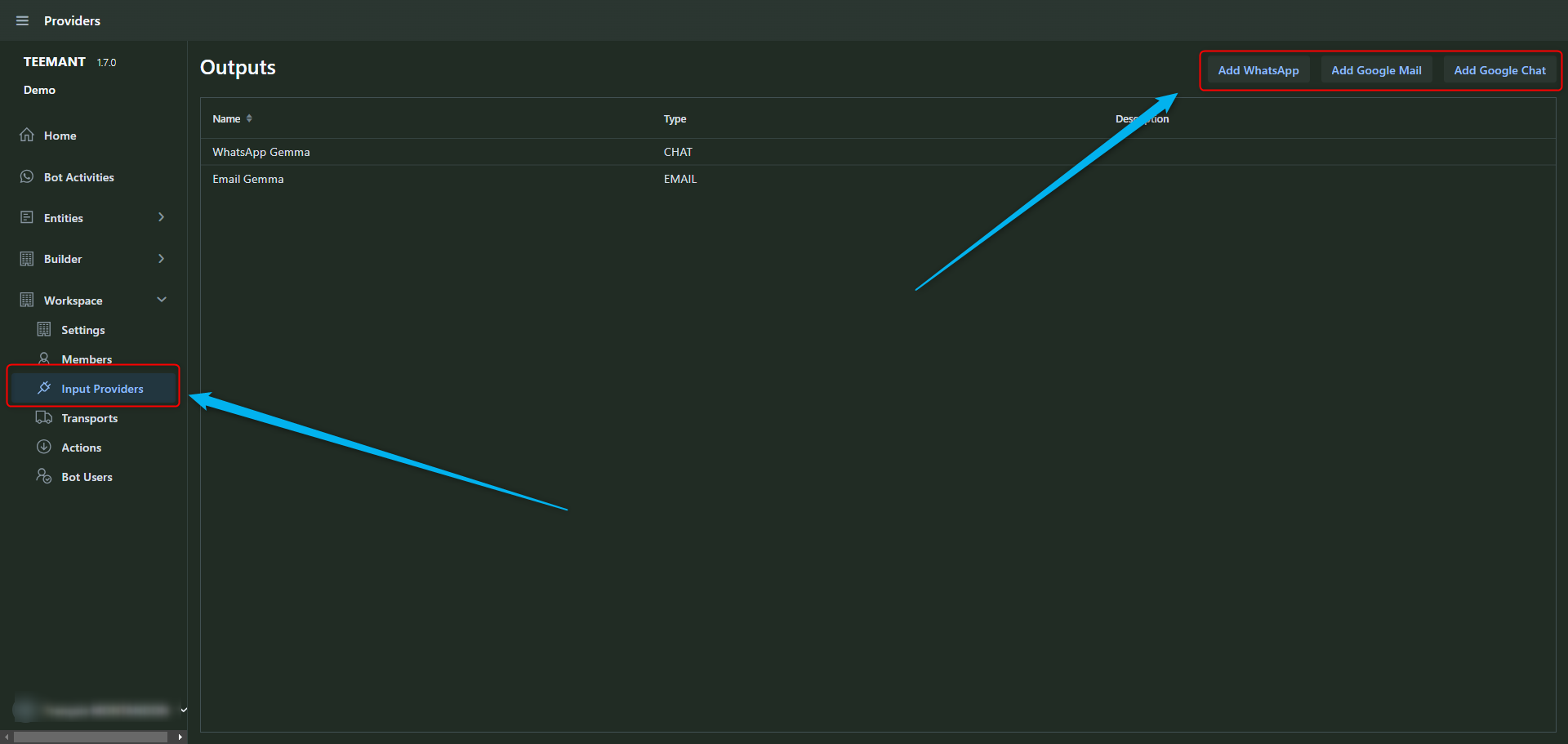 ✔️ Input Providers Setup: WhatsApp, Google Chat, Microsoft Teams, and Email should be properly linked.