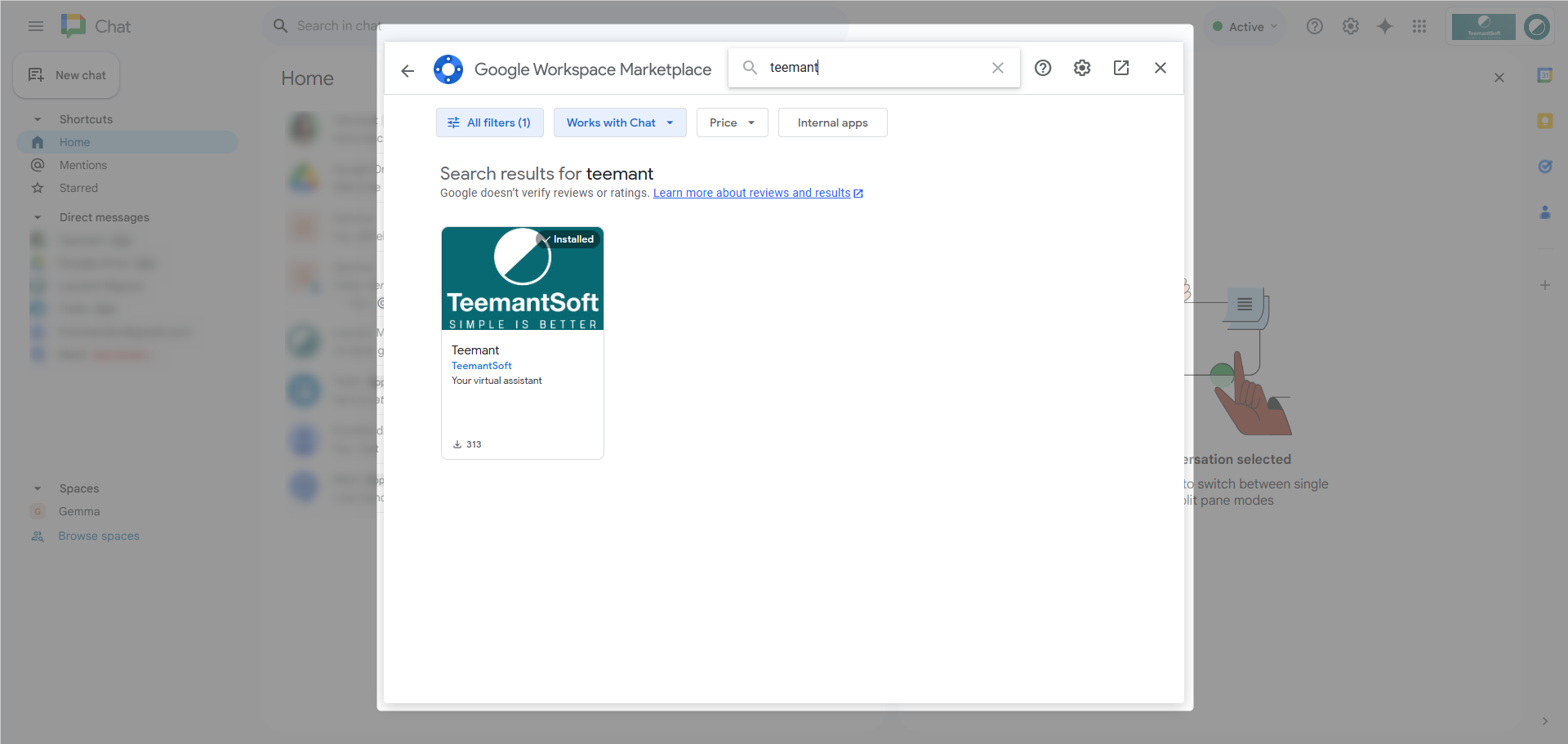 Alternatively, they can use their Google Chat account and install the Teemant application following the standard setup process.