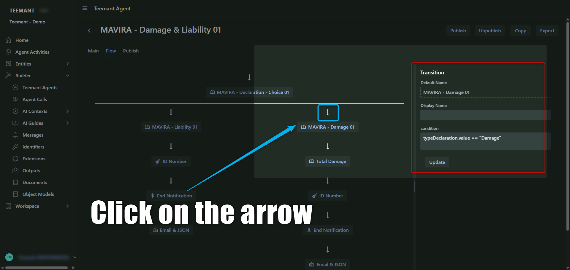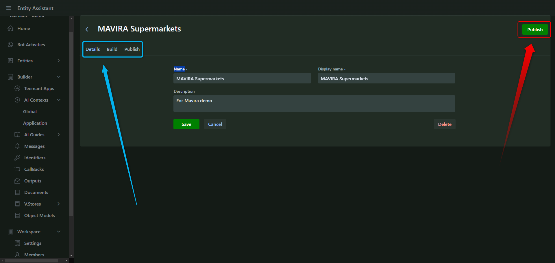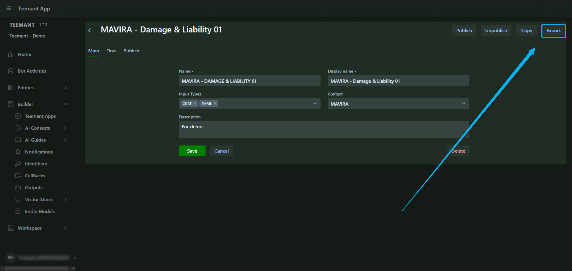 Publishing an application makes it available for use by a Teemant AI agent. Once published, the AI agent can execute the app when a bot user initiates a conversation via WhatsApp, Google Chat, Microsoft Teams, or other integrated platforms.