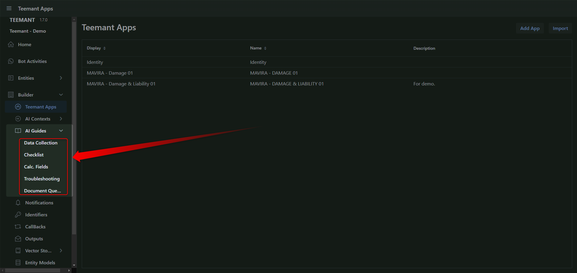 - Used by bot designers to develop Teemant Apps based on flowcharts, forms, and text inputs.