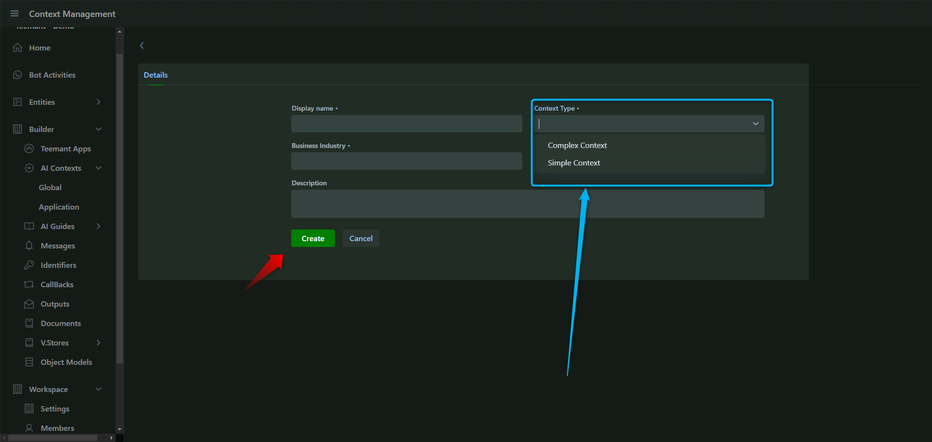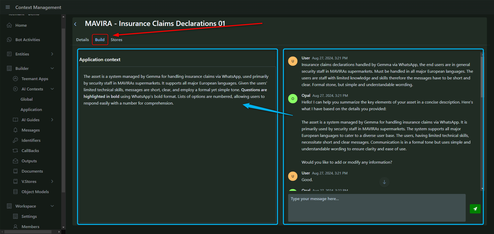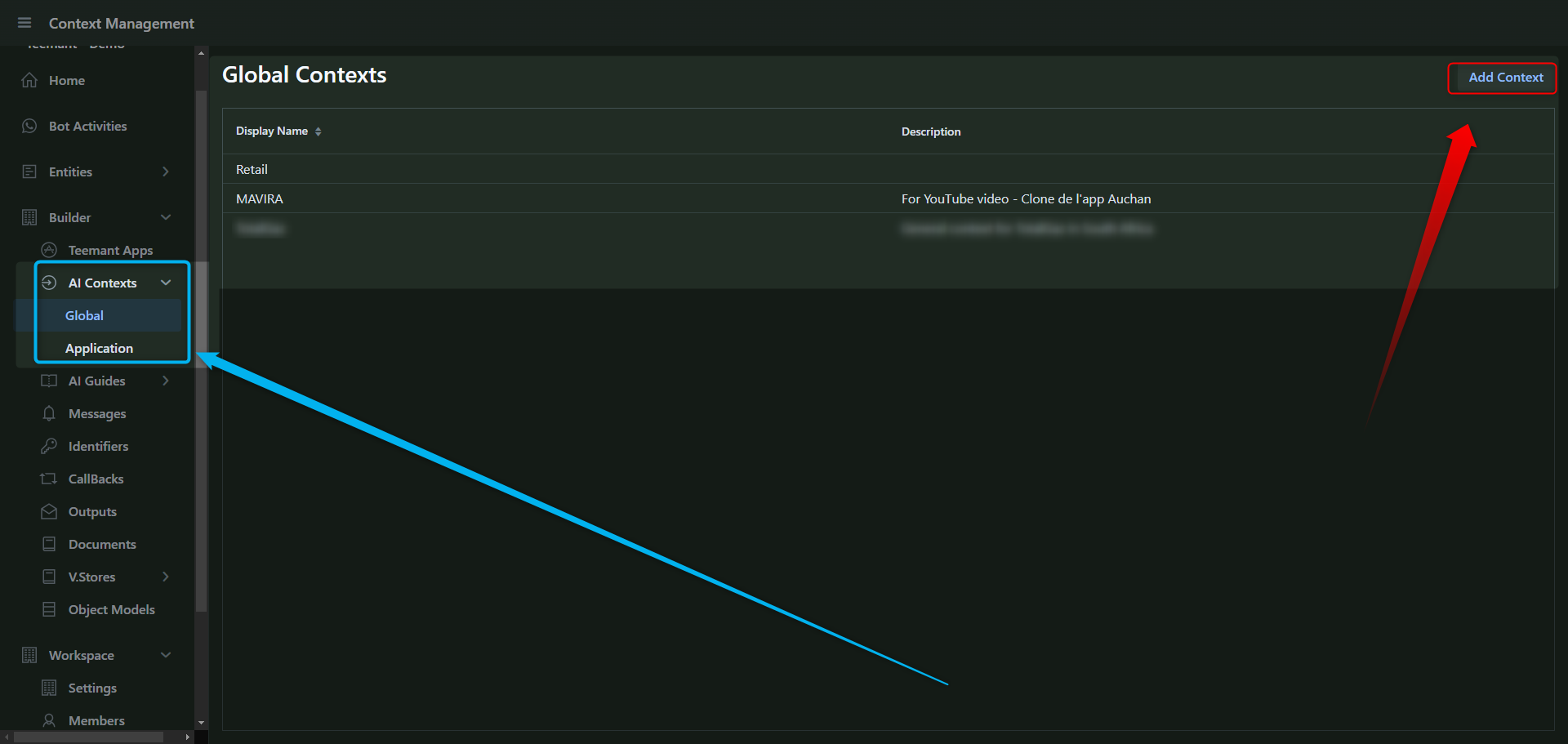 - AI Contexts: Set the knowledge and instructions used by the agents.