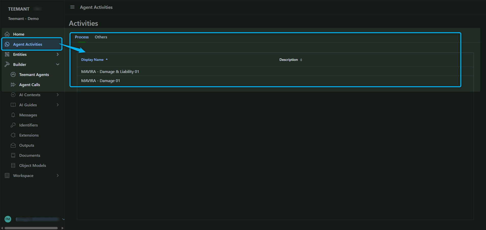 - Agent Activities: View detailed logs of all conversations between users and AI agents.