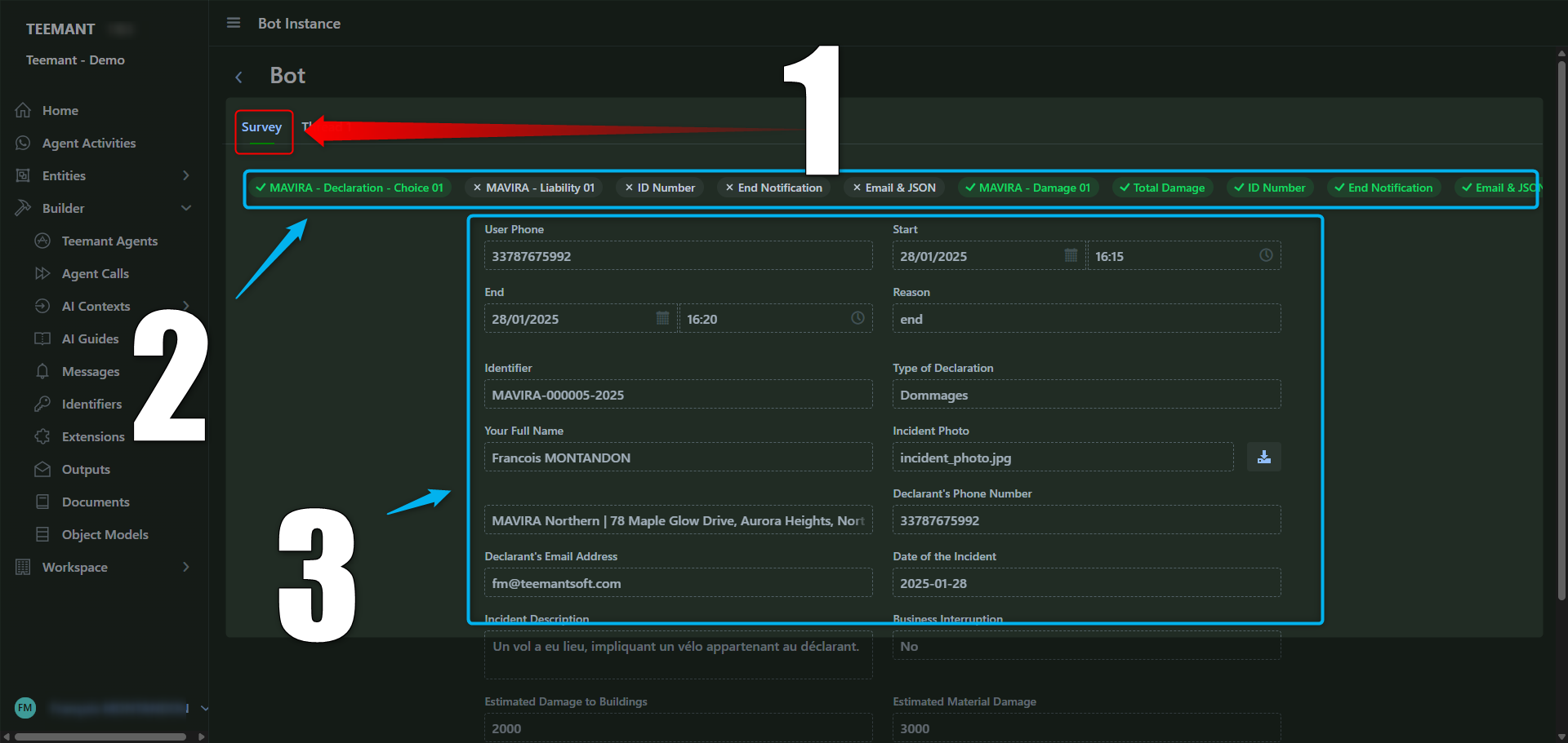 Teemant can autonomously populate entity data based on external systems or workflow triggers. This eliminates the need for repeated manual updates and ensures data remains up-to-date.