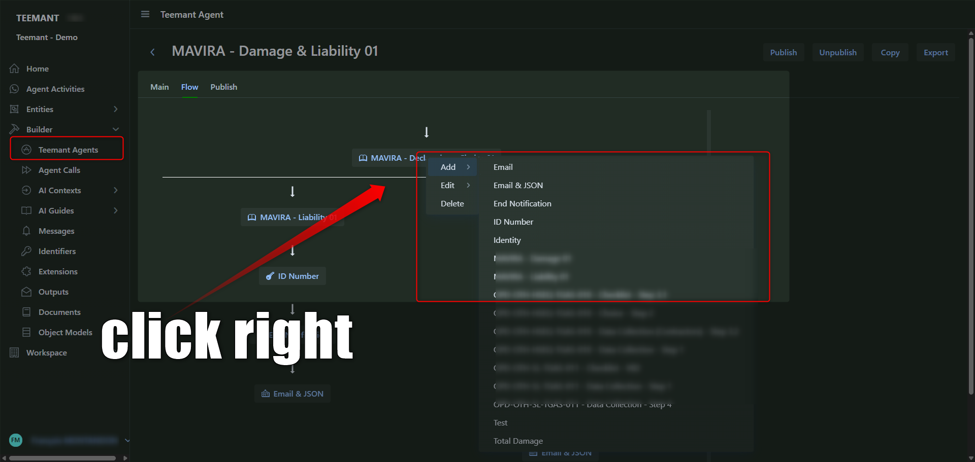 - Agent Calls: Define logic for actions and flows triggered by agents.